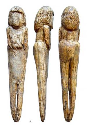 Во время раскопок было обнаружено несколько женских фигурок в меховой одежде (малицы или кухлянки): под одеждой угадывается тело, голова укутана капюшоном, выглядывает лицо.