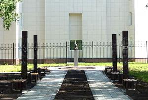 - На колоннах четырех фонарей, освещающих аллею перед памятником, отражены четыре фазы деления клетки, расположенные в случайном порядке (при проведении экскурсий школьникам предлагают выстроить правильную последовательность).